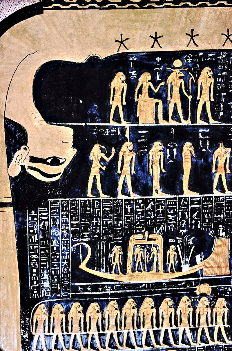 The sky goddess Nut and human figures representing stars and constellations from the star chart in the tomb of Ramses VI